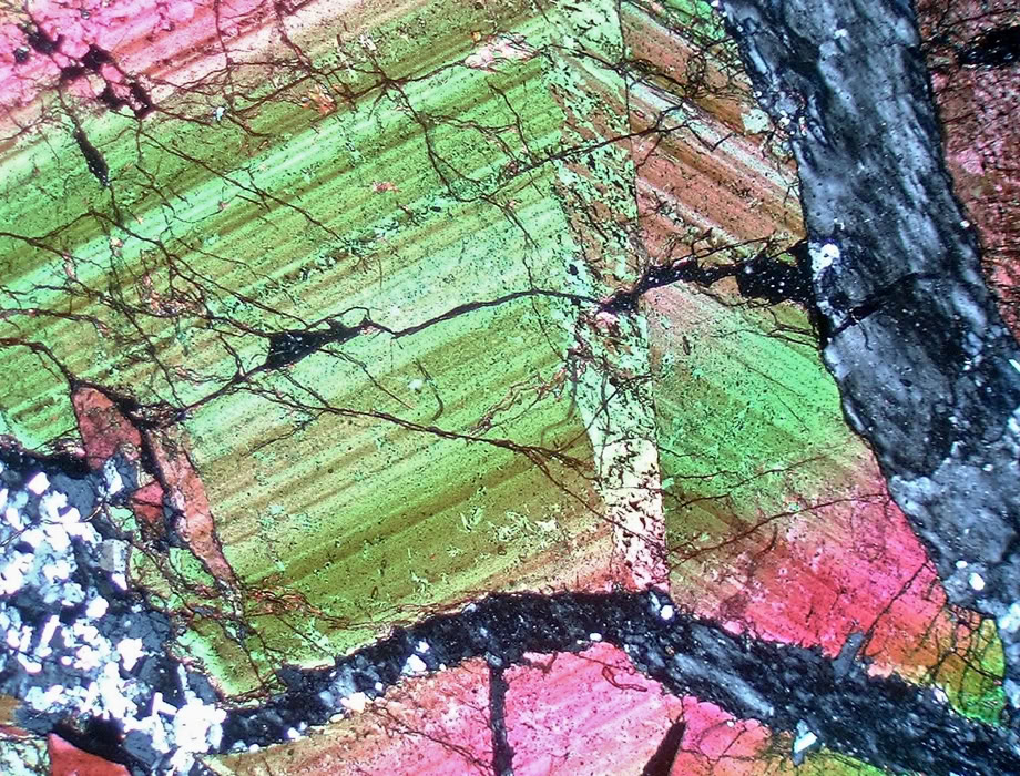 COLOR DE INTERFERENCIA: Colores de interferencia muy altos (tonos pastel de 5º orden), usualmente enmascarados por el color el mineral