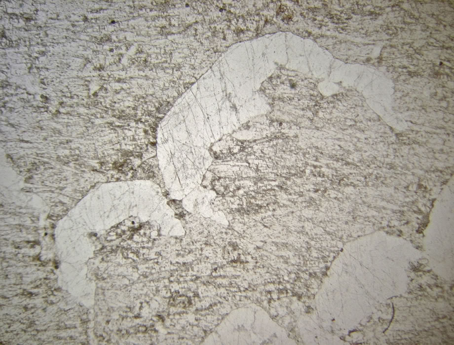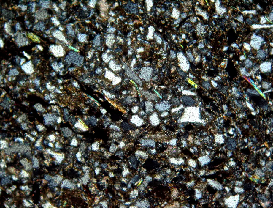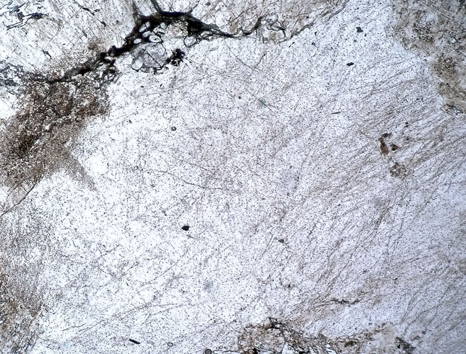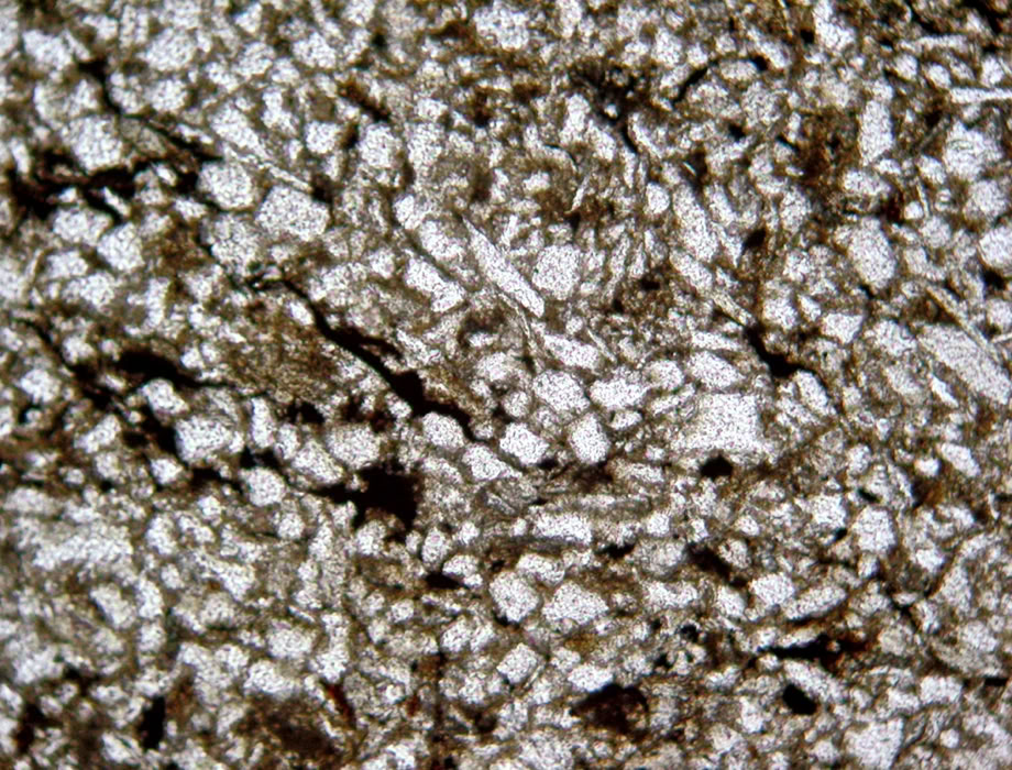Granos de cuarzo (menores de 0.1mm) en una roca sedimentaria (arenisca carbonatada).