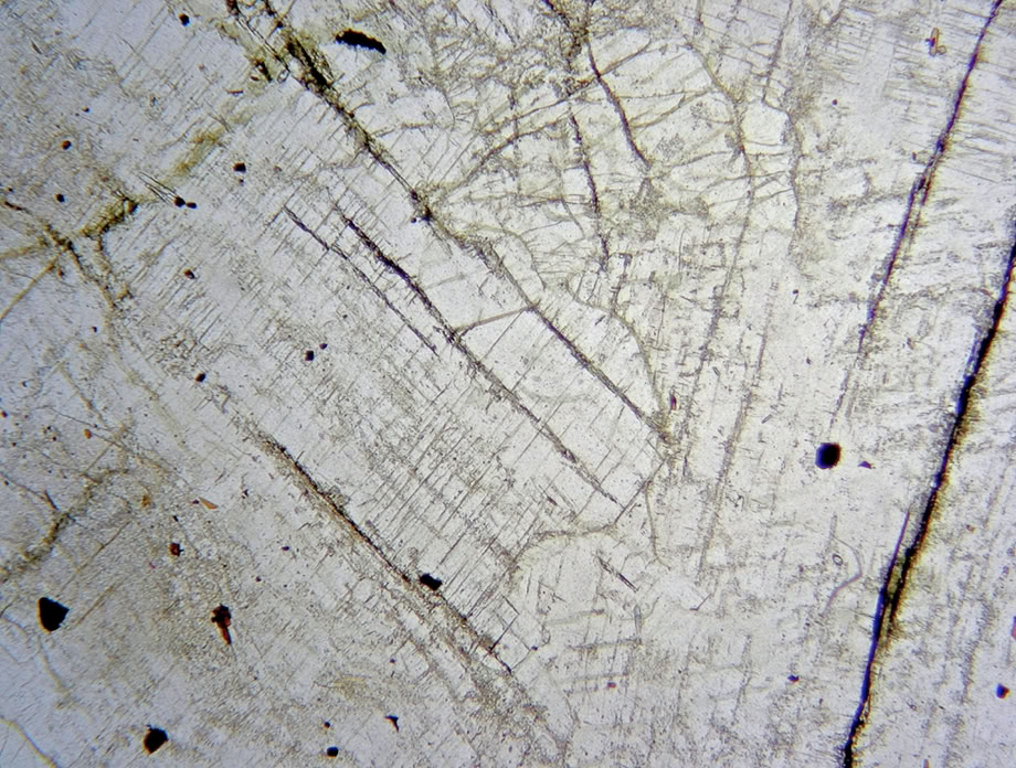 ÁNGULO DE EXTINCIÓN: 5-6º, máximo (puede llegar a 13º en muestras criptopertíticas)