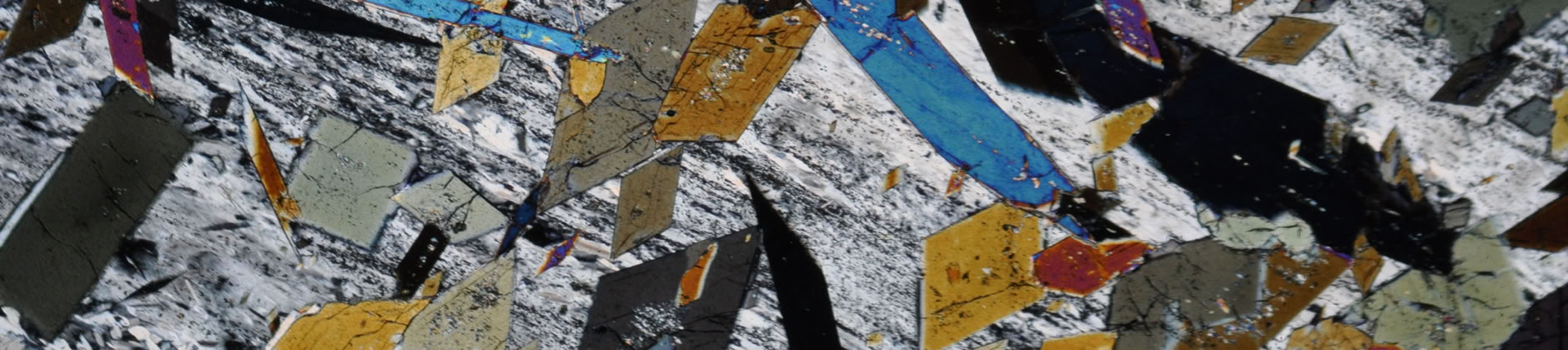 Extinción recta. El mineral está en extinción cuando su dirección de alargamiento coincide con la orientación de los polarizadores. La posición de máxima iluminación se encuentra a 45º de las posiciones de extinción. Polarizadores cruzados.