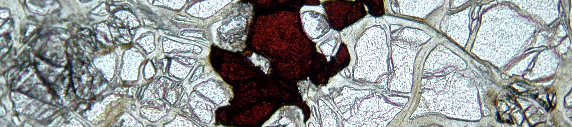 Cromita en una peridotita (olivino, serpentina, ortopiroxeno).