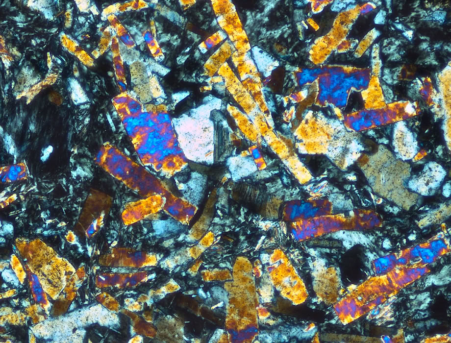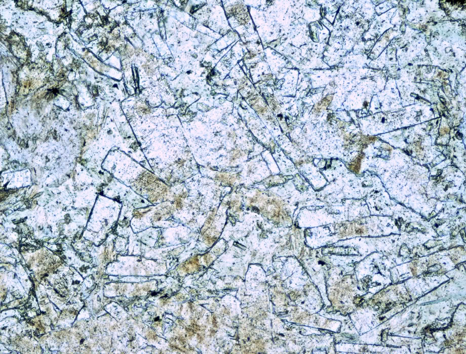 Cristales automorfos de lawsonita en un esquisto (glaucofana, jadeita, cuarzo).