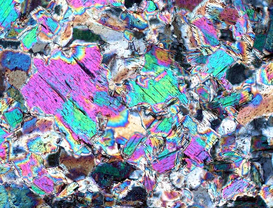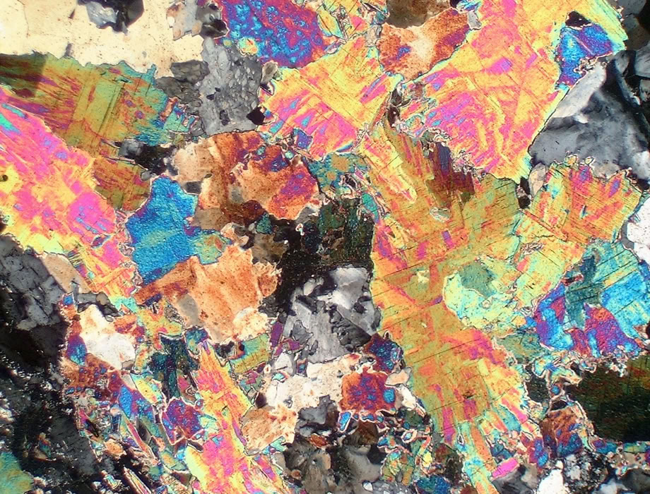 Con luz polarizada se puede observar que los colores de interferencia son ligeramente más bajos que en la moscovita.