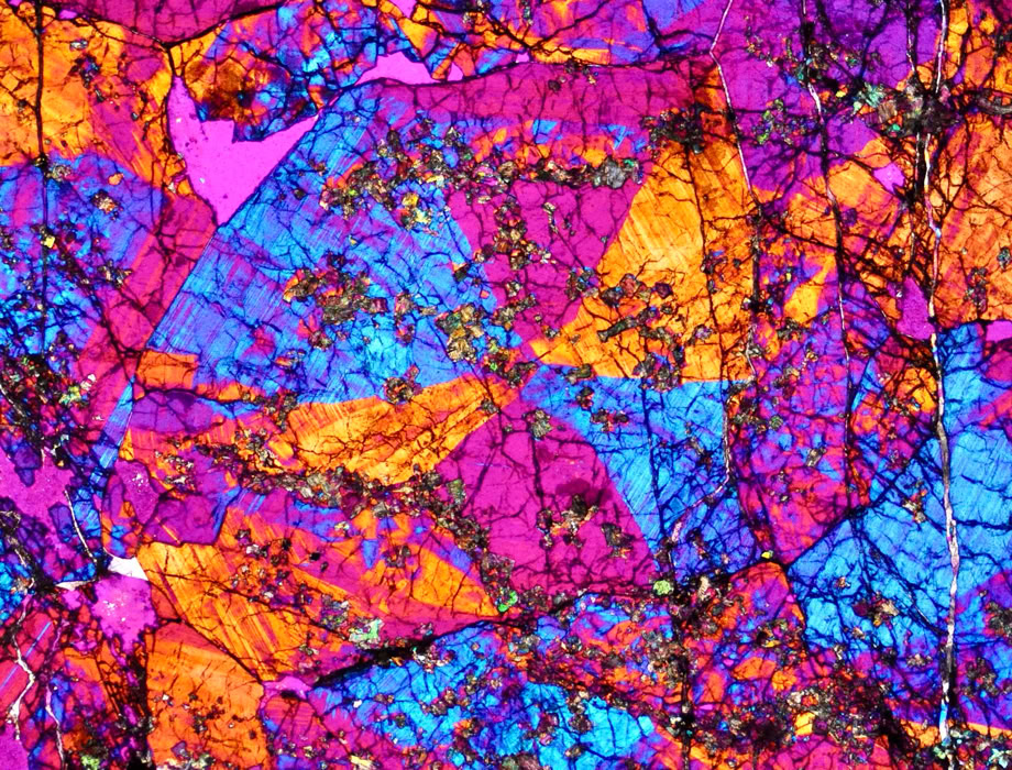 Macla cíclica en un cristal de cordierita. Polarizadores cruzados.
