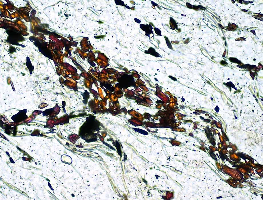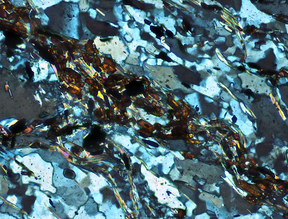 FORMA: Automorfo con formas alargadas o aciculares, como granos xenomorfos