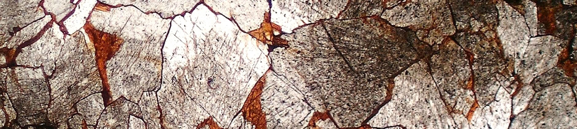 Cristales de siderita, con un principio de oxidación dando acumulación de óxi-hidróxidos de Fe en zonas intergranulares.