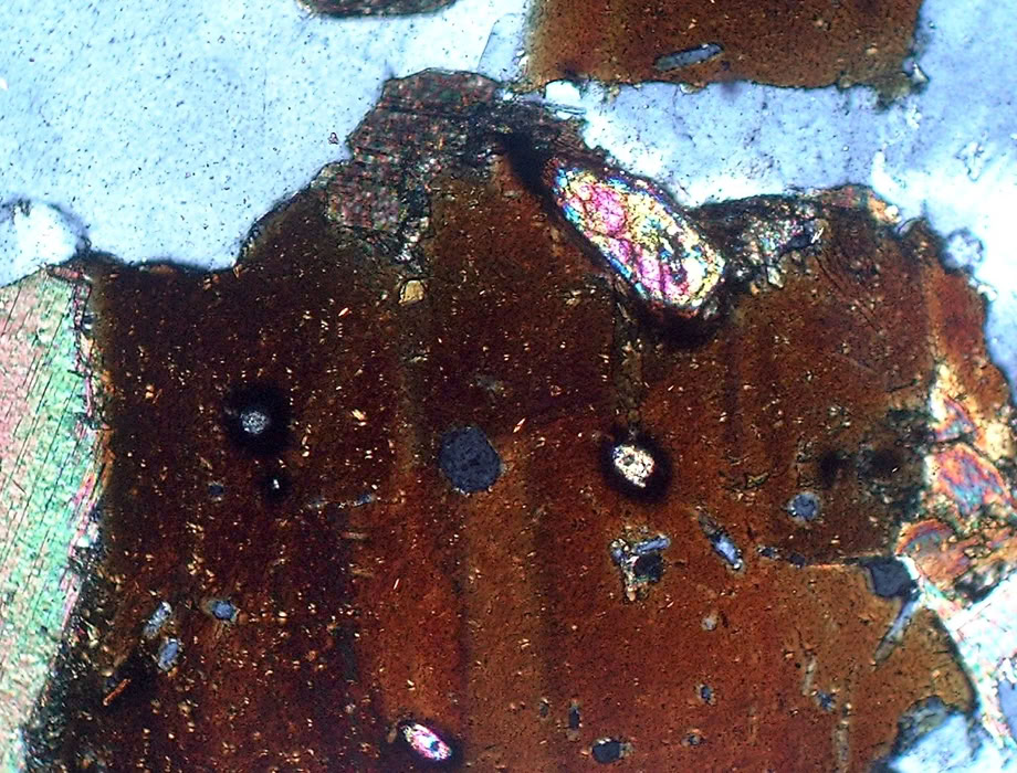OTROS DATOS: Frecuentemente da aureolas pleocroicas en la biotita, cordierita y turmalina. Anómalamente biáxico (2V de 0 a 10). Prácticamente inalterable aunque puede autodestruirse con hidratación (zircón metamíctico)